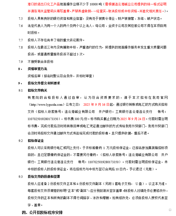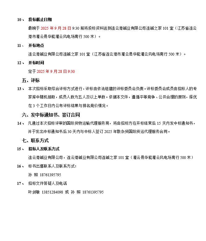 連云港堿業(yè)有限公司散雜貨國際貨運代理服務(wù)商項目招標公告
