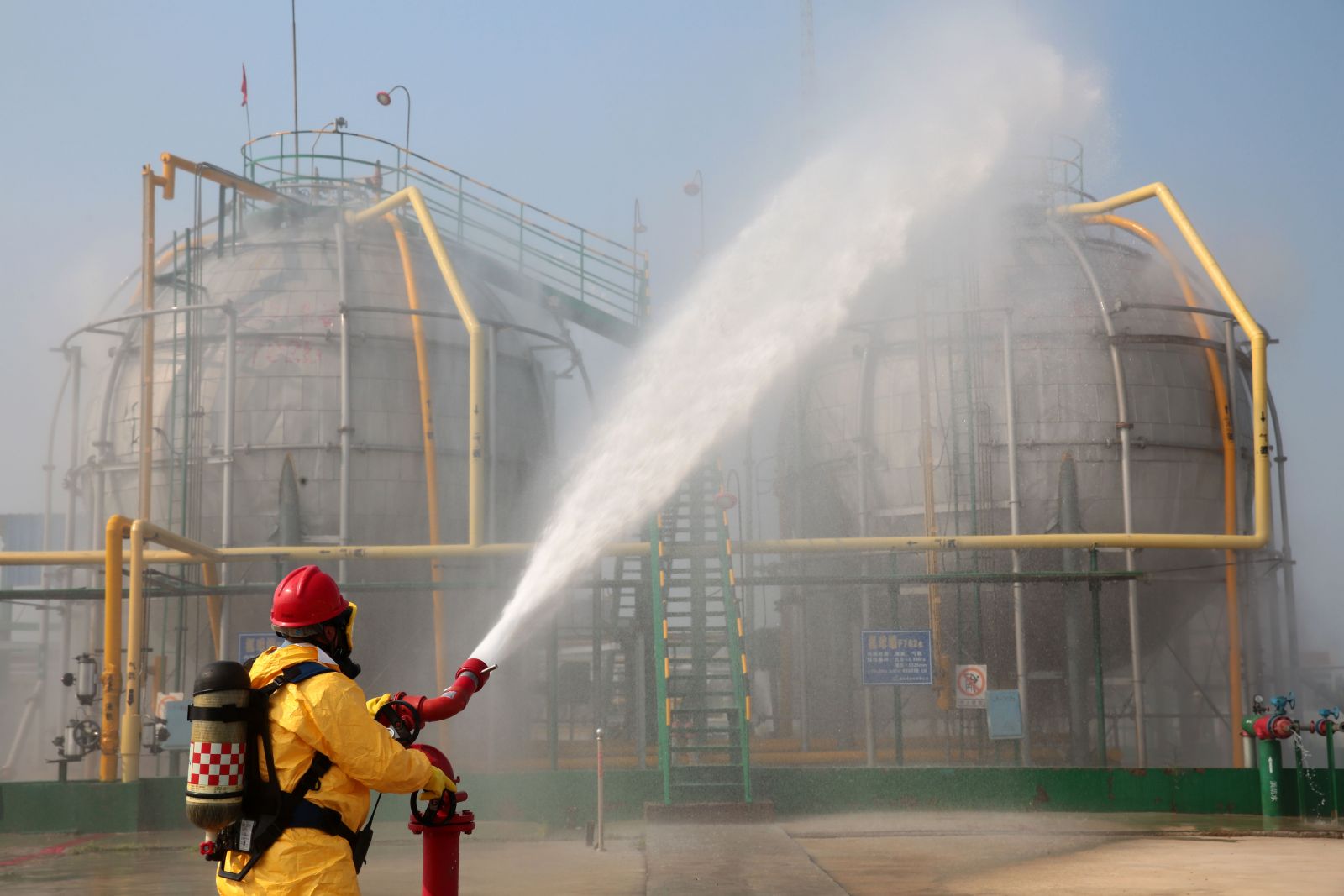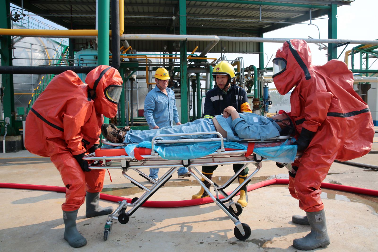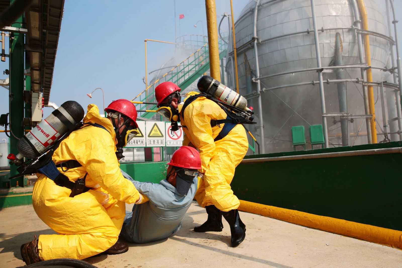為檢驗公司應急救援時(shí)各環(huán)節的協(xié)調能力和應急救援預案的可操作性,提高應急人員在緊急情況下妥善處置突發(fā)事件的實(shí)戰能力,9月5日,公司以“液氨庫B球罐底部發(fā)生泄漏,現場(chǎng)當班工人中毒”為假想事故,在液氨庫舉行秋季危險化學(xué)品生產(chǎn)安全事故應急救援演練。
