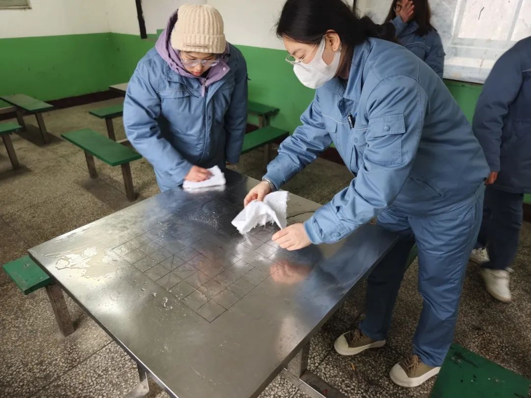 質(zhì)檢中心的青年職工們來(lái)到堿廠(chǎng)生活區老年活動(dòng)中心,在這里進(jìn)行一次“大掃除”,為前來(lái)休閑娛樂(lè )的長(cháng)輩們提供一個(gè)舒適干凈的休閑場(chǎng)所。青年們分工明確,齊頭并進(jìn),埋頭苦干。他們有人擦拭窗戶(hù),有人清理桌面,有人收拾垃圾、打掃地面。不一會(huì ),堿廠(chǎng)生活區老年活動(dòng)中心便煥然一新。