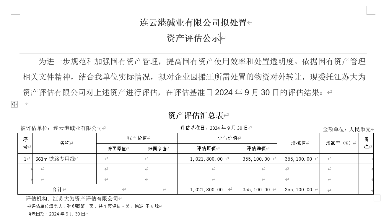 連云港堿業(yè)有限公司鐵路專(zhuān)用線(xiàn)資產(chǎn)評估公示