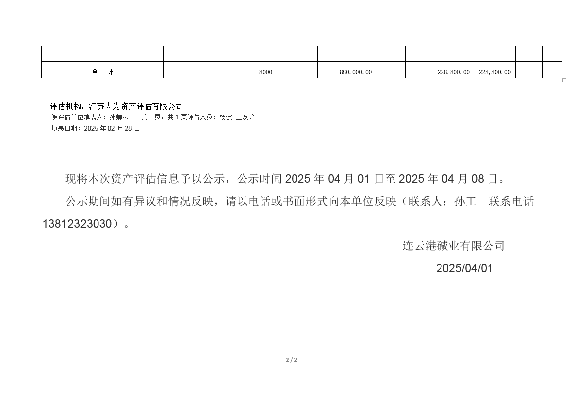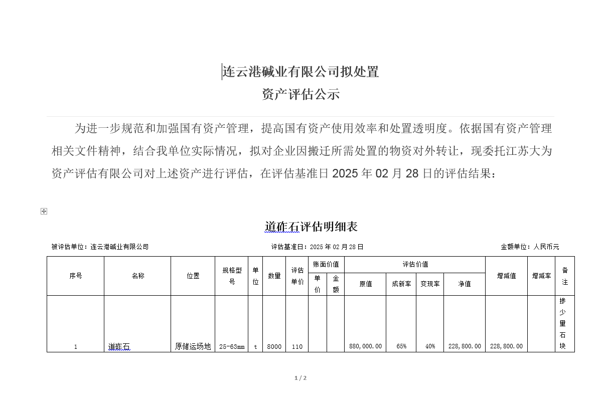道砟石資產(chǎn)評估公示