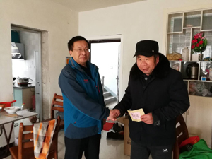 2月6日,公司董事長(cháng)張衛民親自來(lái)到結對農戶(hù)卞建軍家,送去慰問(wèn)金、大米和食用油,仔細詢(xún)問(wèn)一家人的生活現狀,特別叮囑14歲的卞紹剛,多承擔些家務(wù),照顧好殘疾的父母、家人,好好學(xué)習,將來(lái)?yè)撈痧B家的責任。